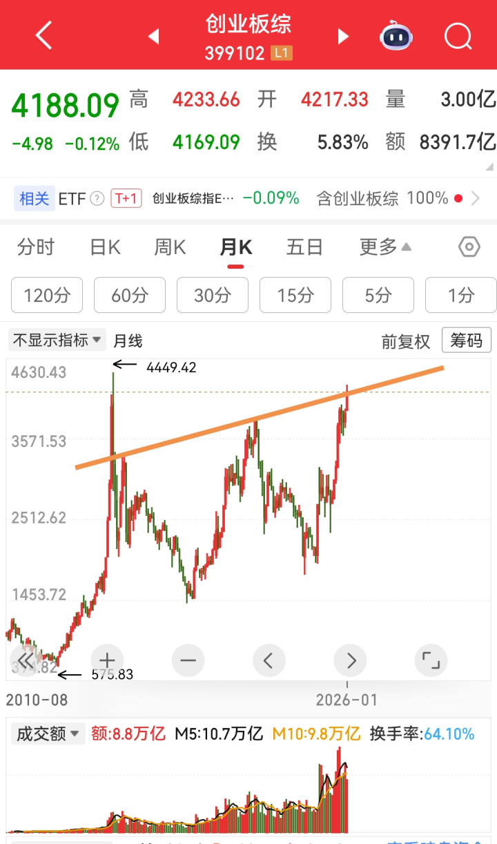 创业板综也差不多,但是很明显这个动作是右倾的,更强。当然也是一样,形态突破后可能发生一个自然回撤。