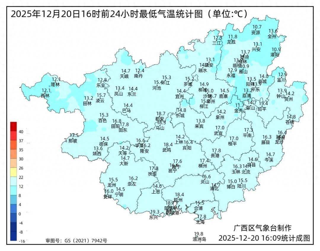 广西气象台20日17时发布预报:
